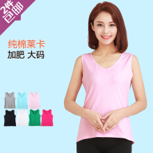 春夏新款莱卡棉质大码V领宽肩背心女 加肥加大纯棉低领无袖打底衫