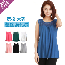 加肥大码吊带背心女莫代尔 蕾丝花边宽肩无袖打底衫 宽松上衣显瘦