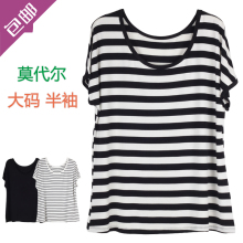莫代尔特大码短袖T恤女宽松 加肥加大条纹半袖打底衫纯色胖mm上衣