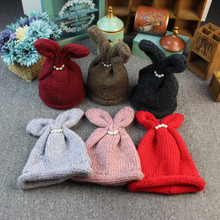 2016新款秋冬韩版儿童毛线帽子女小童加厚可爱兔耳朵针织套头帽