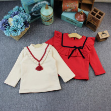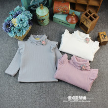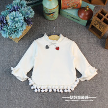 恬妈童装 2016新款冬装儿童女小童宝宝韩版纯棉花边打底衫 加绒