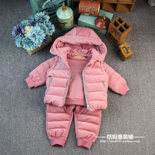 2016新款冬装儿童女小童宝宝韩版加绒夹棉面包服 棉衣棉袄