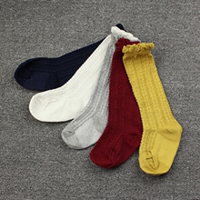 2017新款春秋季精梳棉女小童宝宝中筒袜 纯色麻花儿童中筒毛线袜