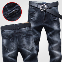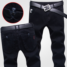 秋冬厚款黑色牛仔裤男韩版修身青年弹力修身破洞小脚裤男灰色长裤