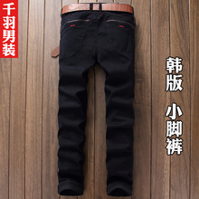 黑色牛仔裤男春秋款韩版修身休闲小脚裤青年男士弹力显瘦潮男裤子