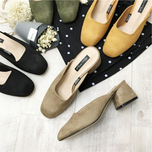 2017春秋新款韩国东大门磨砂绒方头粗跟半拖鞋包头高跟休闲懒人拖