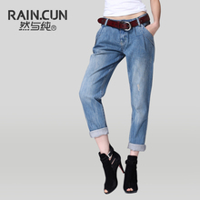 然与纯夏BF风女显瘦薄款卷边韩版大码宽松休闲哈伦弹力牛仔九分裤