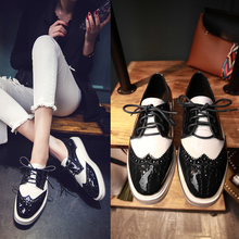 布洛克女鞋英伦风韩版松糕圆头系带春季单鞋女漆皮平底休闲小皮鞋