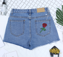 夏季韩版原宿风BF韩版百搭毛边高腰学生玫瑰刺绣牛仔短裤热裤女潮