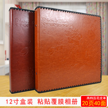 包邮创意高档压花皮革12寸40面粘贴式覆膜相册大本diy自粘式影集