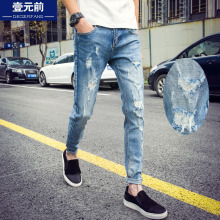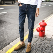 2017春季新款男士牛仔裤男韩版修身小脚裤时尚潮流青少年休闲长裤