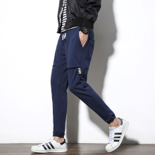 原创男士日系束脚休闲裤男拼接刺绣哈伦裤青少年纯棉长裤大码小脚