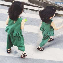 2017新款女宝宝夏装套装棉麻女童背心夏季婴儿童两件套1-2-3岁4潮