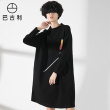 巴古利2017春秋新款堆堆领显瘦打底衫连衣裙修身长袖中长款文艺范