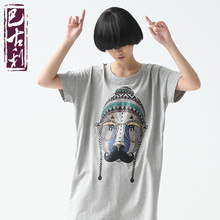 巴古利2017春季新款连衣裙条纹圆领拼接宽松大码宽松棉麻连衣裙女