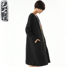 春秋文艺复古大码宽松休闲无领开衫中长款波点暗花风衣外套女