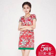 茉希【买1送1】2017夏圆领印花纯棉盘扣民族风短改良旗袍裙H0265