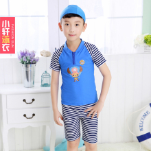夏艳儿童泳衣中大童男女孩平角分体游泳衣短袖条纹儿童温泉潜水服