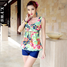 夏艳温泉孕妇游泳衣女分体平角裙式保守加大码遮肚两件套胖mm泳装