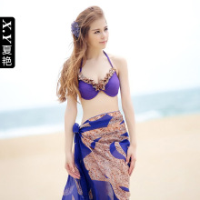 夏艳2017温泉泳衣女比基尼三件套小胸聚拢显瘦钢托披纱游泳衣