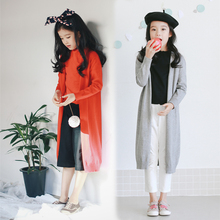 女童春装2017新款韩版中长款针织衫儿童大童装春款潮开衫毛衣外套