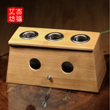 木质艾灸盒 随身灸三孔长形温灸盒加厚竹制艾灸器具艾条艾灸仪器