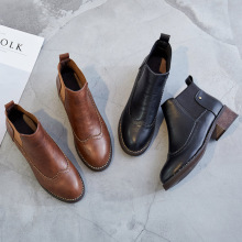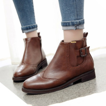2017春秋新款英伦风短靴平底跟马丁靴复古及踝靴女靴中跟女鞋子潮
