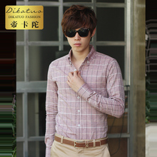帝卡陀春季新款男士长袖衬衫 韩版修身格子全棉衬衣 男商务正装