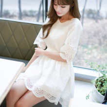 春夏季韩国宽松显瘦蕾丝连衣裙学生夏季日系软妹娃娃裙白色裙子仙
