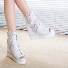 柏缔欧松糕鞋 春秋 女鞋鱼嘴短靴真皮厚底内增高单靴子镂空女单鞋