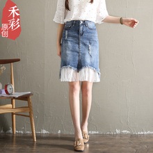 禾彩不规则牛仔裙短裙夏季2017新款女潮学生韩版拼接a型半身裙