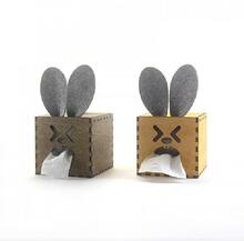 GeekCook DIY抽纸盒 木质欧式收纳盒 家用客厅创意卷纸纸巾盒偶兔