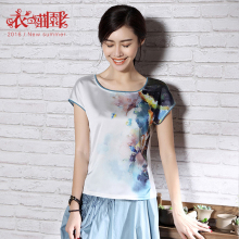 衣之庄园 大码显瘦 2016夏季新品文艺休闲百搭宽松女短袖印花T恤