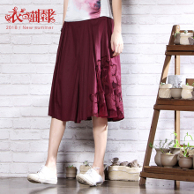 衣之庄园 夏季百褶裙中裙全棉 宽松女 蓝色绣花半身裙母亲节