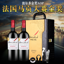 法国波尔多原装进口aoc红酒干红葡萄酒双支红酒礼盒装