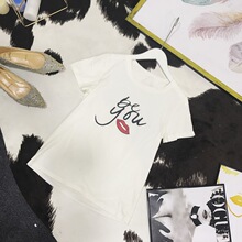 红唇t恤女2017夏季新品字母印花短袖修身上衣
