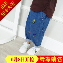 佐佐家童装秋装16新款儿童韩版牛仔裤 男女宝宝宽松刺绣裤子韩版