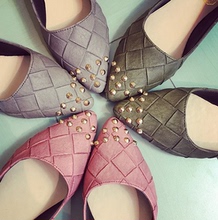 新款尖头单鞋女平底鞋浅口百搭铆钉编织透气工作鞋子女夏休闲鞋韩