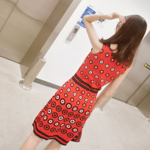波点背带裙夏季韩版红色无袖连衣裙女冰丝吊带裙修身中长款针织裙