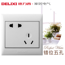 德力西墙壁开关插座86型错位斜五孔电源插座套餐 二三插5孔 正品