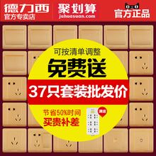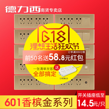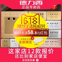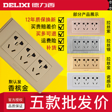 德力西开关插座86型错位斜五孔118型面板香槟金5眼九孔十二孔套餐