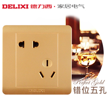 德力西开关插座套餐二三插五孔电源墙壁面板 错位5孔86型香槟金装