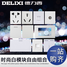 德力西开关插座瓷感白 错位斜5眼二三插墙壁电源五孔插座面板86型