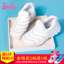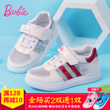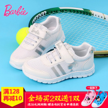 芭比童鞋女童白色运动鞋2017百搭小白鞋公主鞋中大童透气跑步网鞋