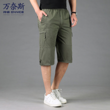 中年男士七分裤中老年大码中裤男装夏季纯棉沙滩裤爸爸装休闲短裤