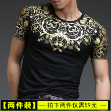夏季原创潮流男装个性烫金t恤男士修身印花图案短袖体恤潮男小衫