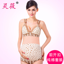 孕妇无钢圈棉内衣 前开扣防下垂哺乳文胸可调节高腰孕妇套装内裤