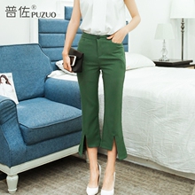高腰开叉微喇裤女 2017夏季九分裤薄款休闲裤 性感显瘦大码阔腿裤