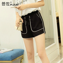 运动短裤女夏2017新款 热裤a字裤黑色阔腿裤 宽松高腰薄款休闲裤