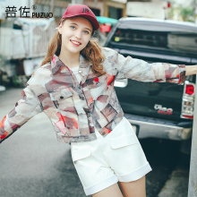 短外套女秋装2016新款潮 欧洲站欧根纱上衣 薄款宽松休闲夹克衫女